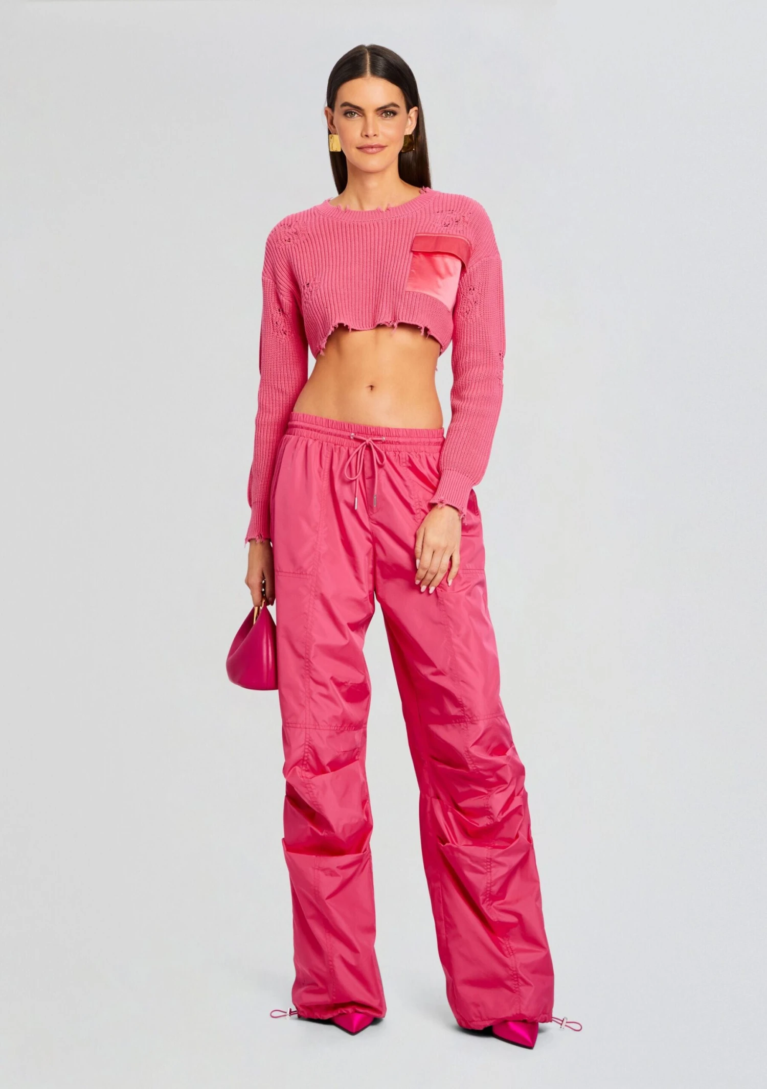 Upgrade your streetwear game with SER.O.YA’s Adelia Cargo Pant. These utilitarian-inspired ruched cargo pants featuring a banded hem and elastic waist for the perfect blend of style and comfort. Crafted with durability in mind, these pants are designed to keep up with your active lifestyle while adding an edgy flair to your wardrobe. Shown here in Watermelon.