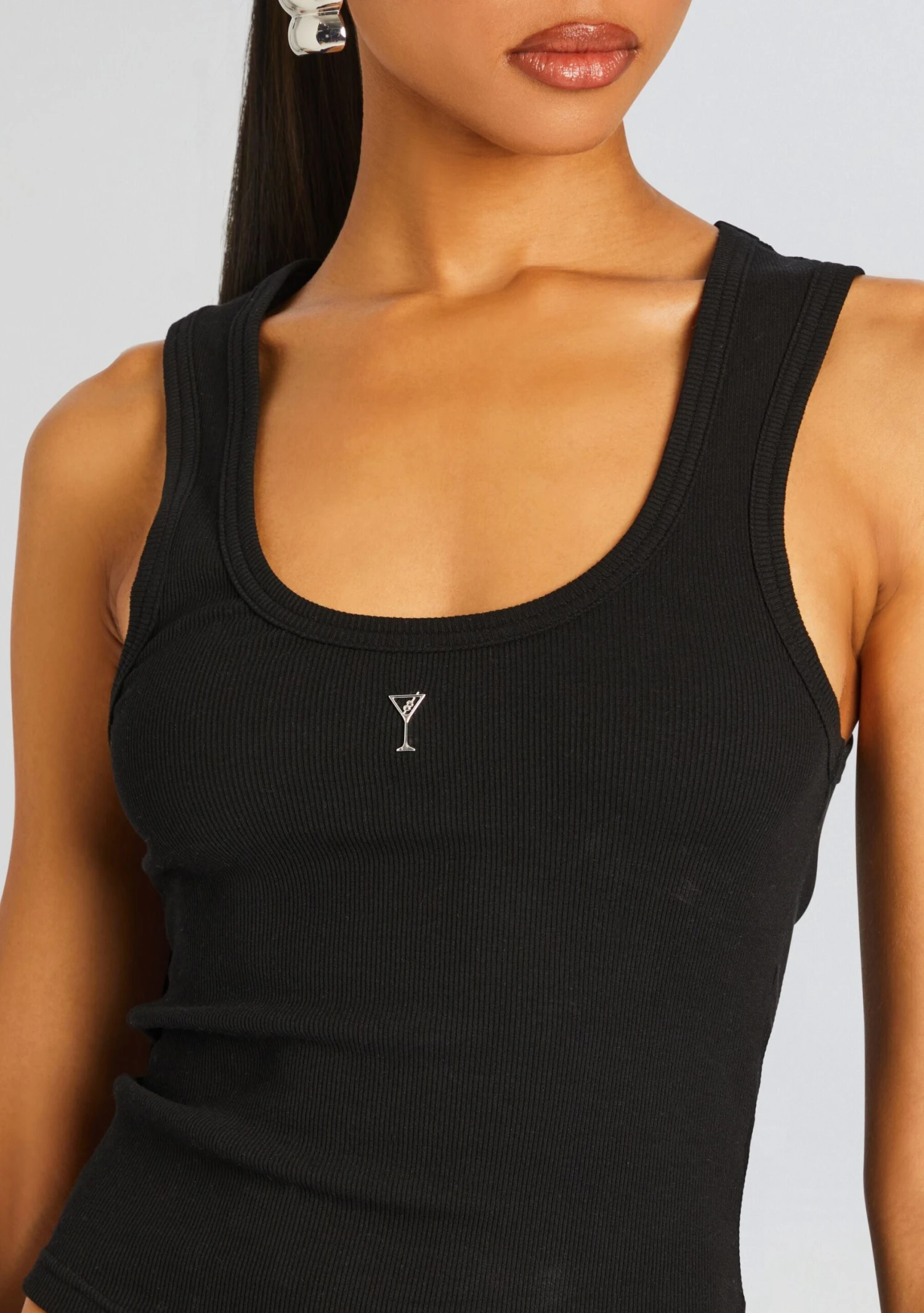 Introducing our newest wardrobe essential – Our Amani Tank, providing a fresh take on the timeless tank top, highlighting our exclusive martini design. This top effortlessly combines an edgy vibe with refined elegance, ensuring you make a statement at social gatherings or a night out. Crafted for comfort and style, indulge in the perfect mix with our top, guaranteed to turn heads and spark conversations wherever you go. Shown here in Black.