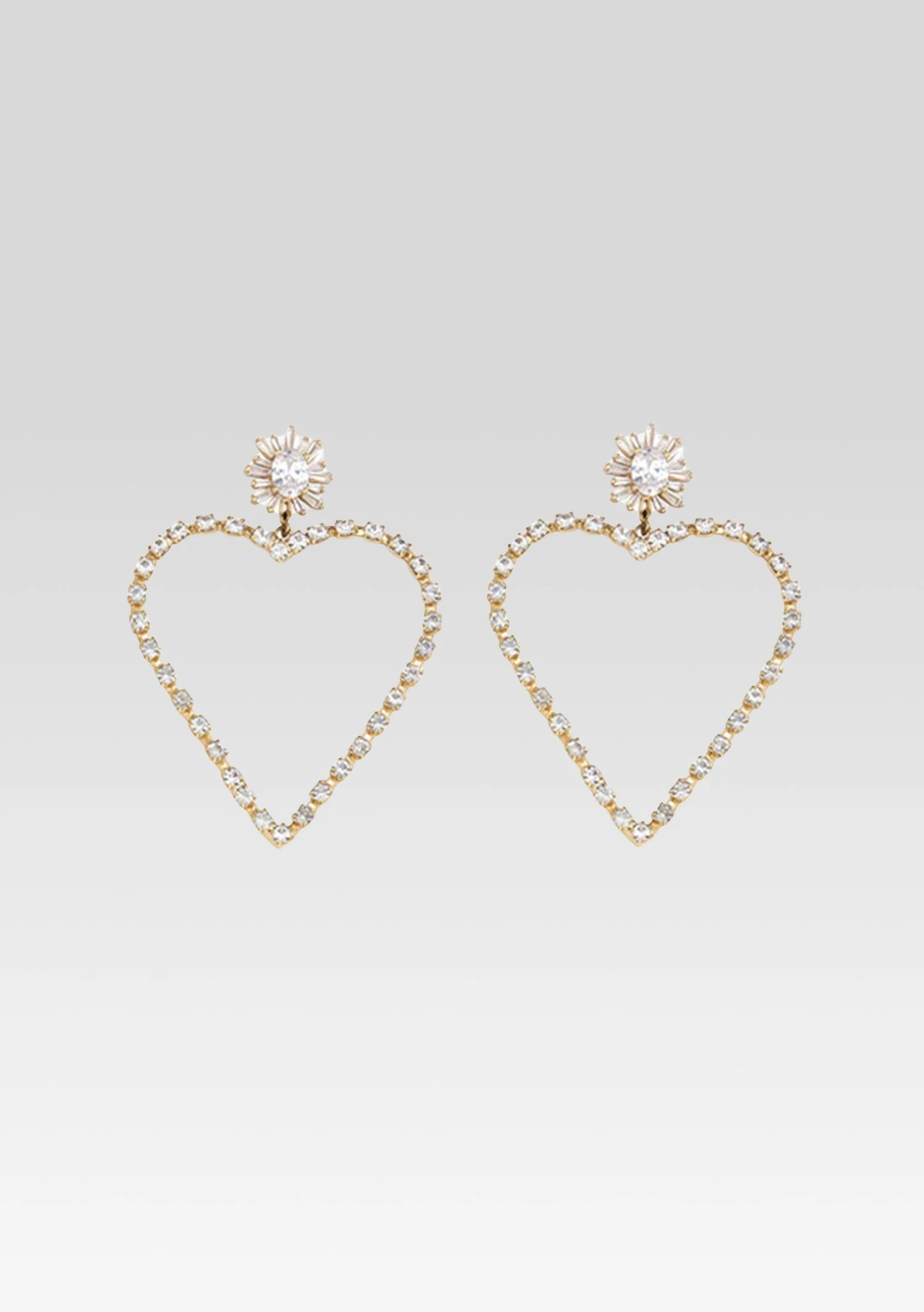 Accessorize your look with Keren Wolf’s dainty Amor Earring featuring an irresistible heart design decorated with bright embellishments and a gemstone stud. Shown here in Gold.