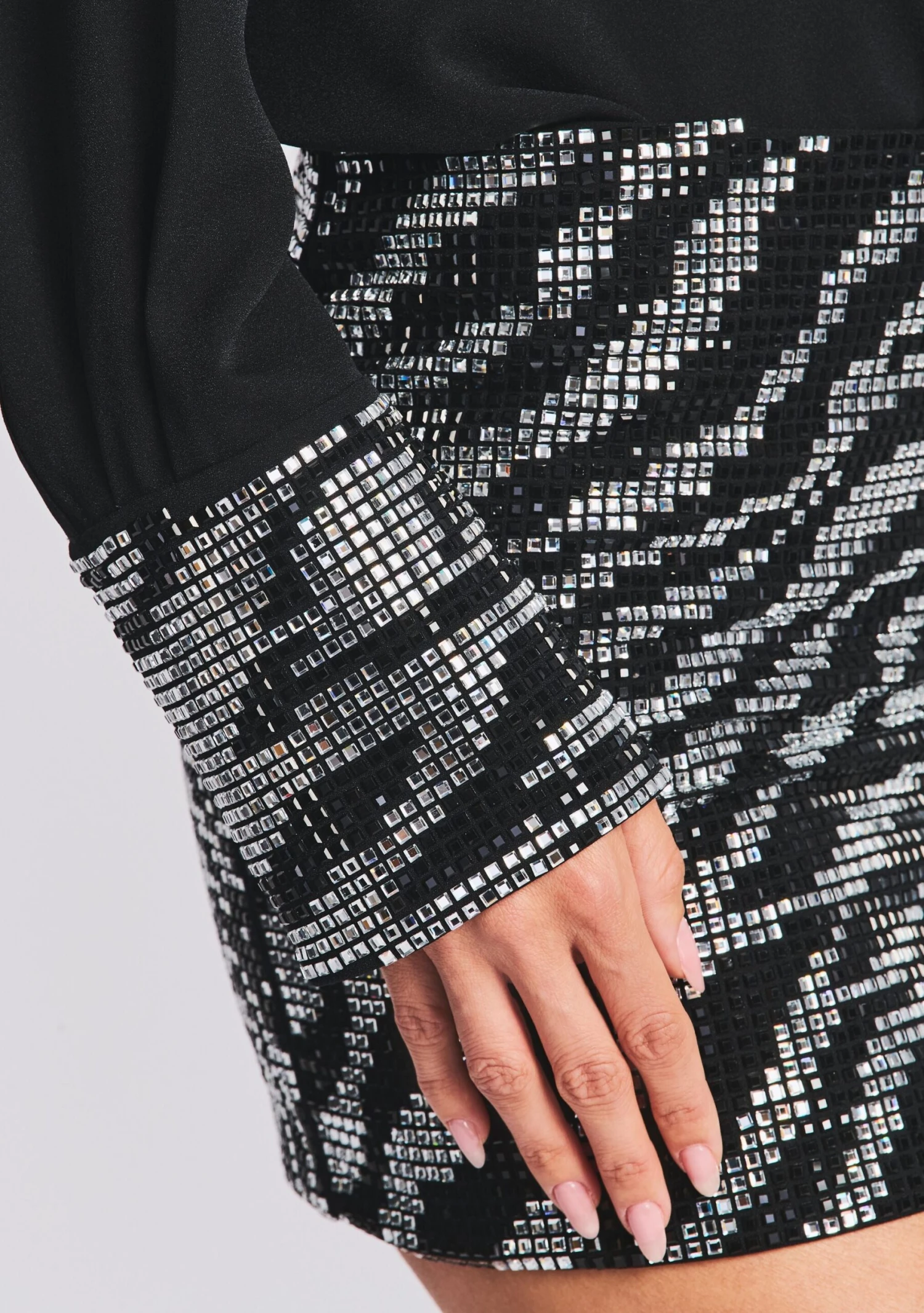 Elevate your style with our Andrea Shirt featuring sequin cuff detailing, designed to effortlessly add glamour to every occasion. Shown here in Black/Silver.