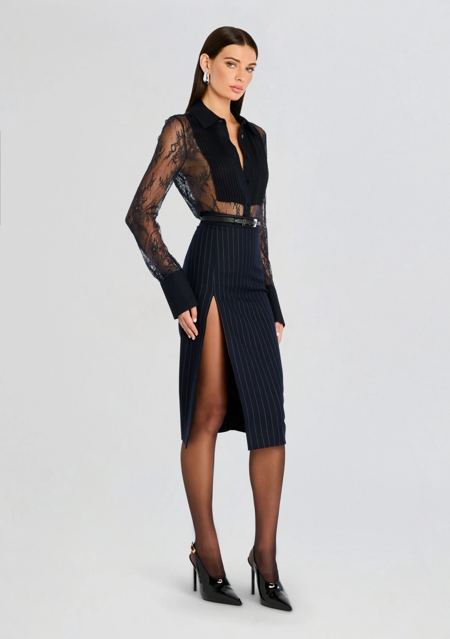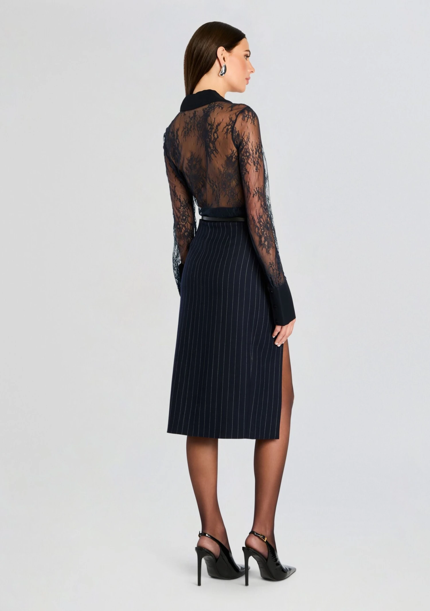 Our Armelle Lace Blouse is a delicate and feminine piece that is perfect for any occasion. It’s crafted from a soft and delicate lace fabric that will feel amazing against your skin. The classic design of this blouse makes it a versatile piece that can be dressed up or down. Shown here in Navy.