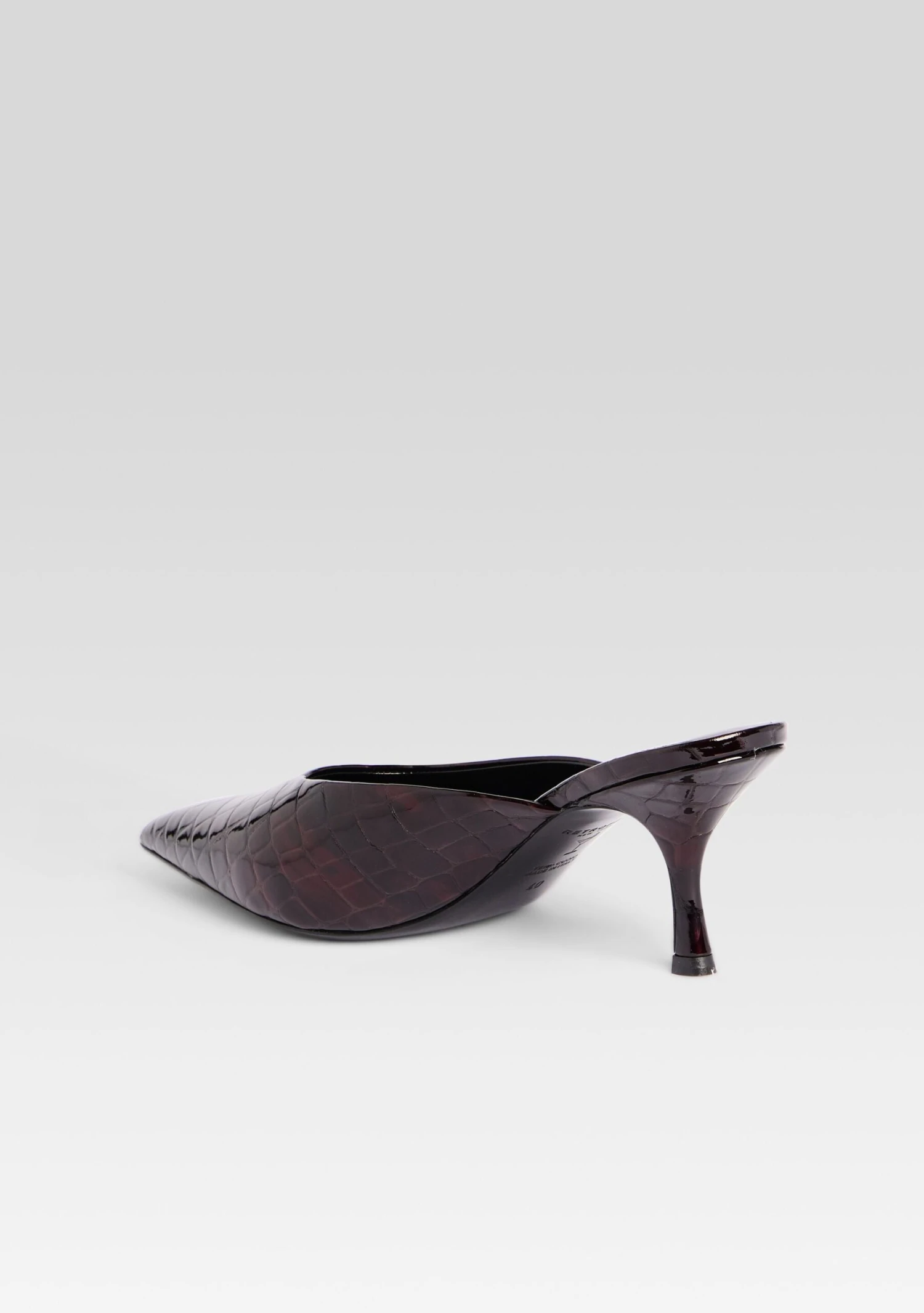 Introducing our Bonnie Leather Mule, crafted from luxurious croco embossed leather. With a comfortable and flattering heel height, these mules are both stylish and practical. And the pointed toe adds a touch of elegance to any outfit.