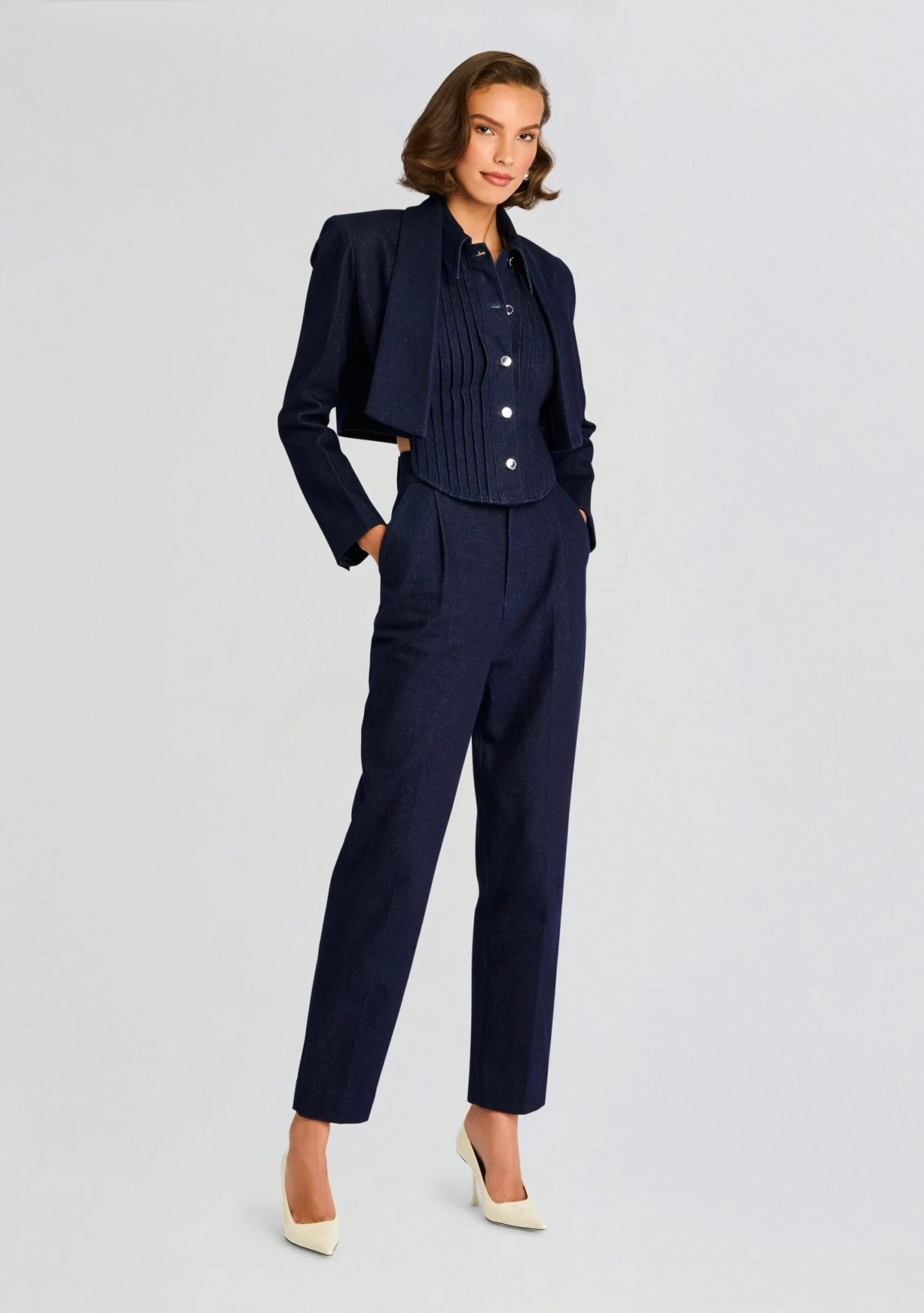 Our Clara Denim Blazer, shown here in Rinse, is the perfect blend of sophistication and casual chic. This tailored blazer offers a flattering fit and a versatile design, making it ideal for both work and weekend wear. Pair it with jeans for a casual look or dress it up with a skirt for a more polished ensemble. Shown here in Rinse.