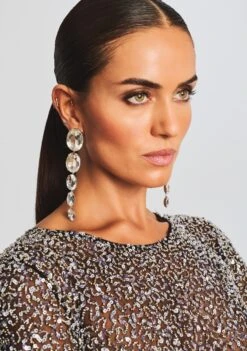 Shine through the night with our Daphnis Crystal Bag. This pouch clutch is covered in oversized crystal embellishments and is the perfect size for an evening out—fitting all the essentials, no more, no less. Shown here in Silver.