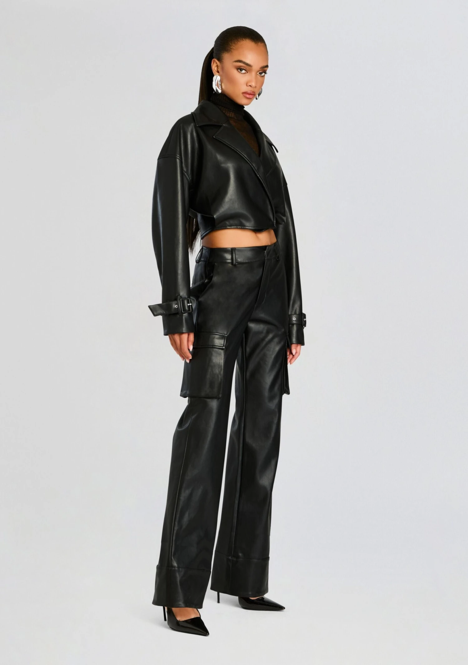 Fifer Vegan Leather Mid Rise Cargo Pant