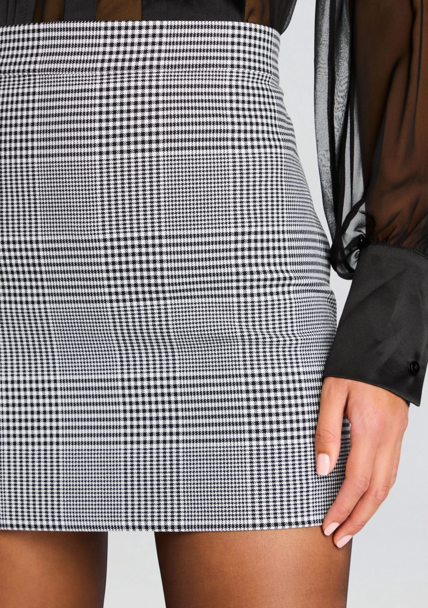 Indulge in luxury with the Francie Skirt. This plaid mini skirt is the perfect addition to your wardrobe for any dinner date or holiday event. Its sophisticated design will elevate any outfit, making you stand out in a crowd. Make a statement and exude elegance with the Francie Skirt.