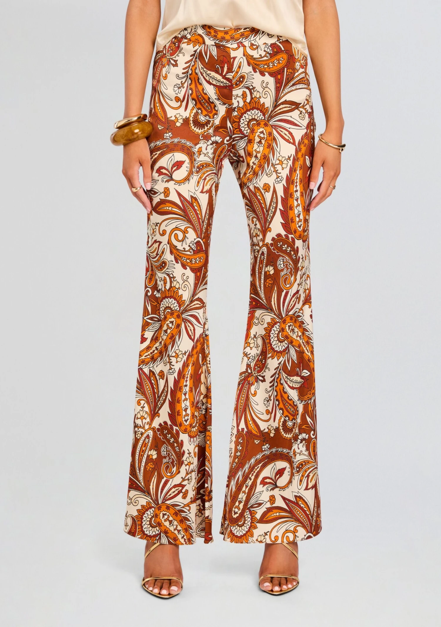 The Harmoni Pant offers a modern take on evening wear with its stricking paisley print and flattering flare cut. Designed for a stylish night out, these pants blend classic patterns with a modern silhouette, providing a polished and confident look. Shown here in Terracotta Paisley.