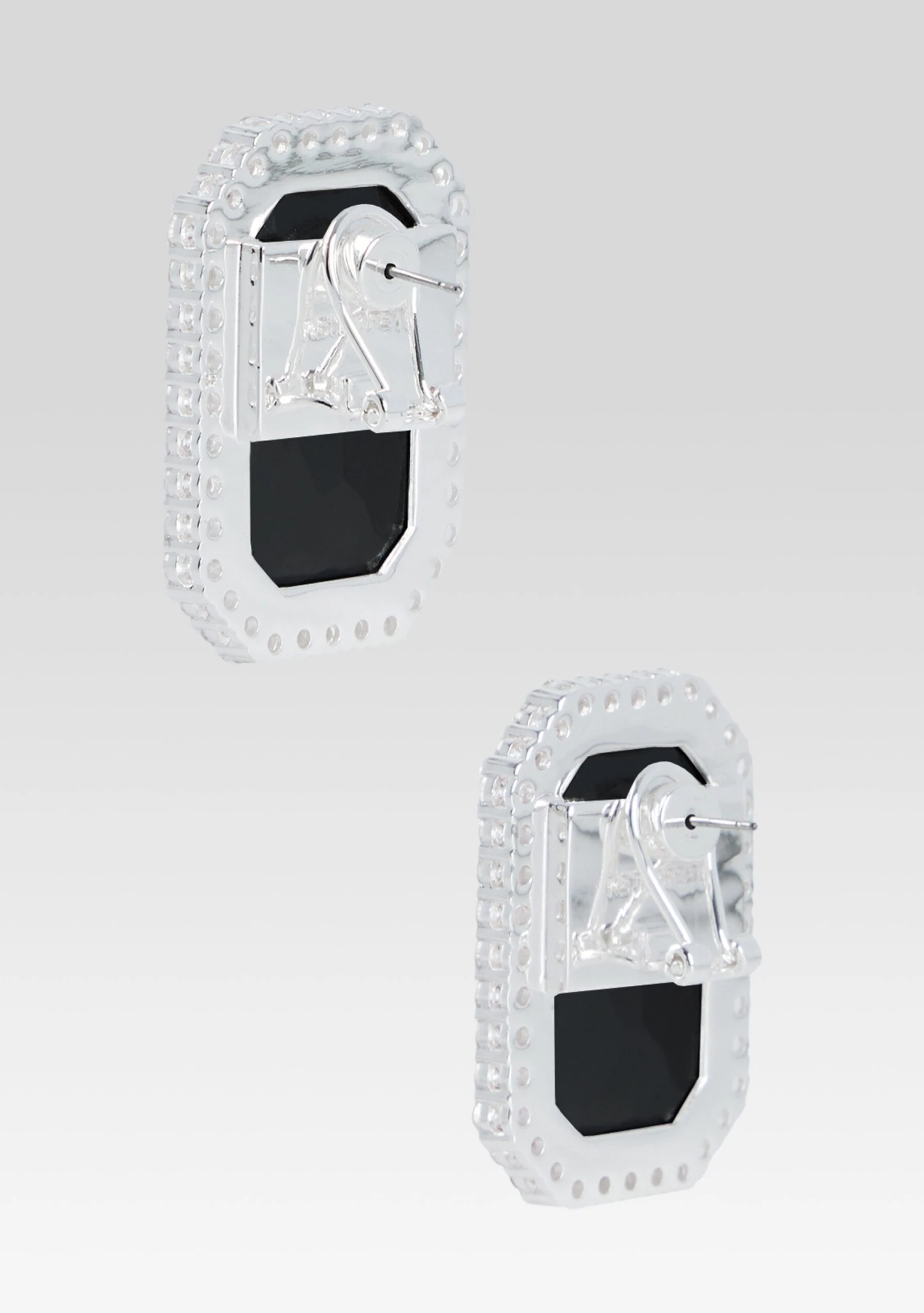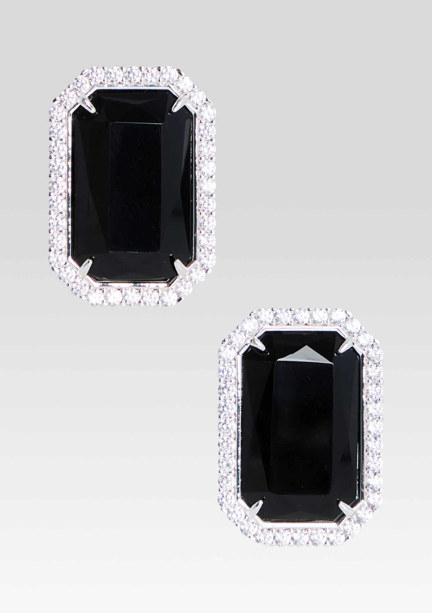 Add a touch of luxury to your special occasion outfit with the Hope Gemstone Earrings. These stunning earrings feature large Black gemstones embellished with silver accents. Elevate your look with these sophisticated and exclusive earrings.