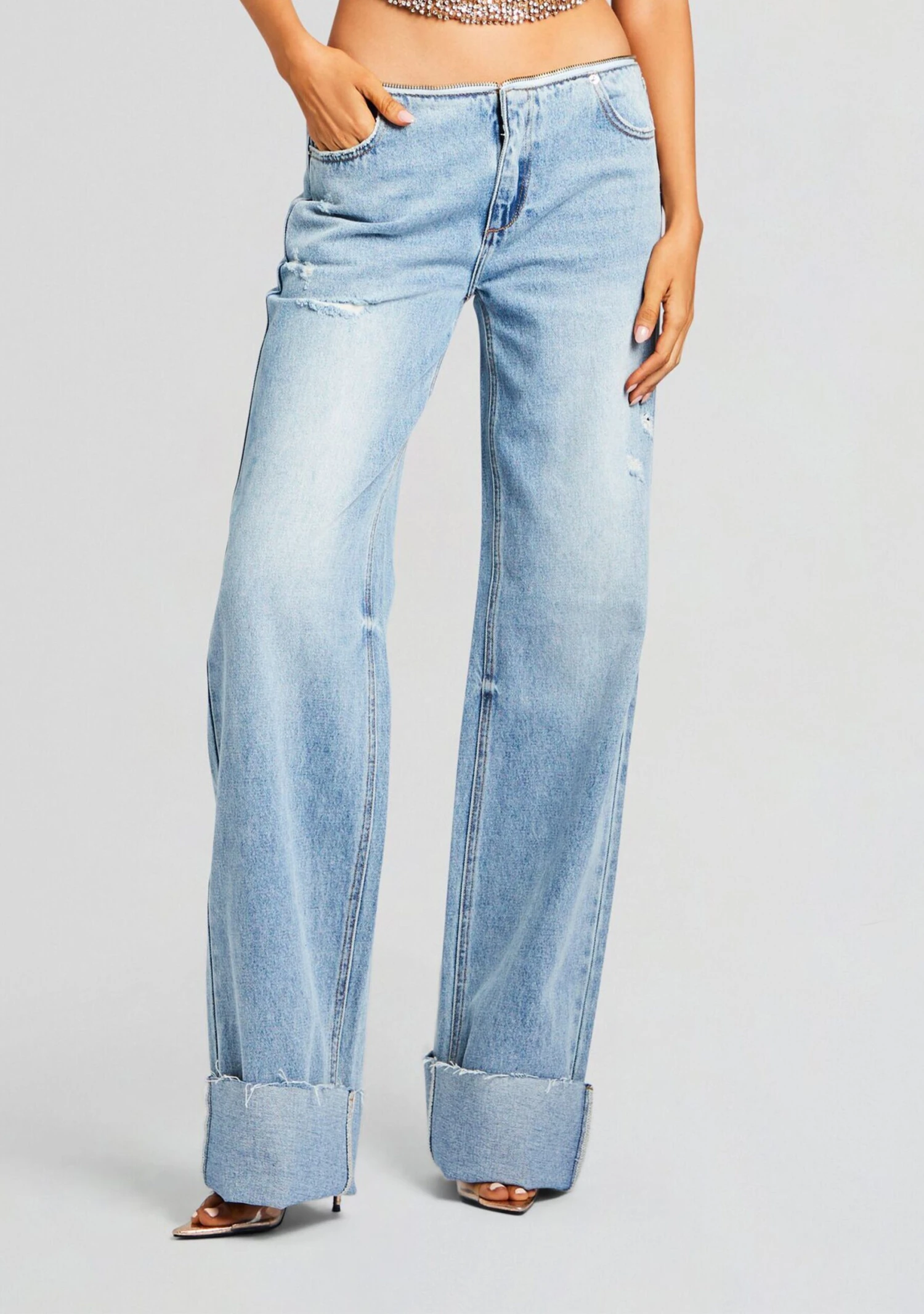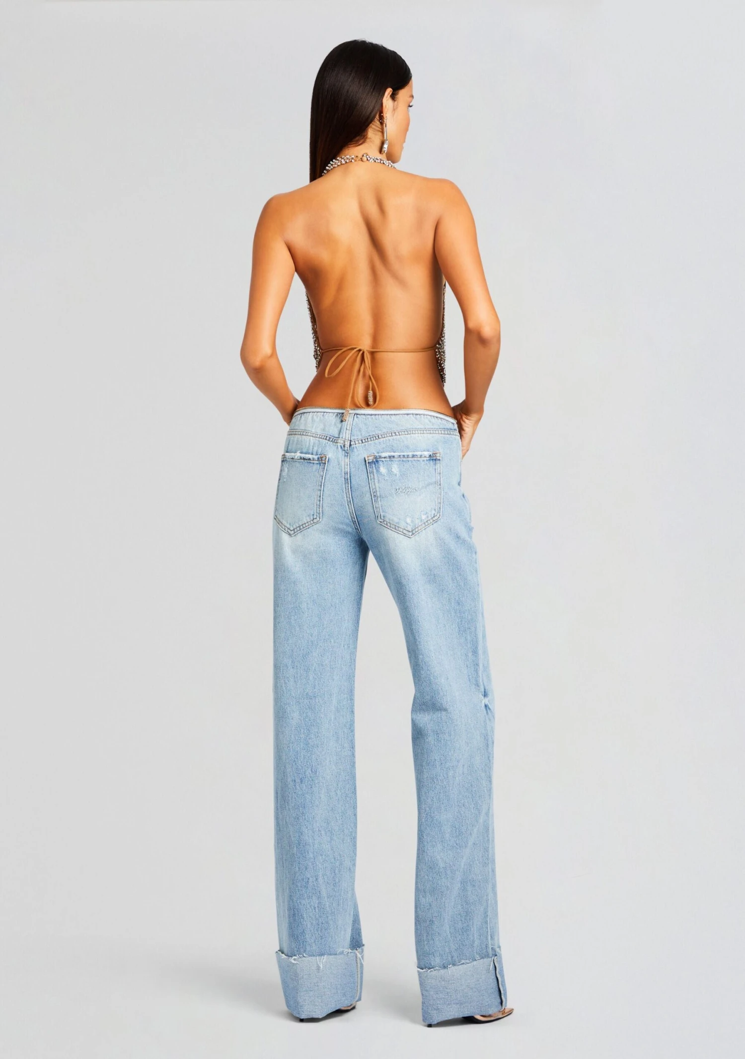 Experience versatility in SER.O.YA’s Hustler Jean. The cuffs add a touch of sophistication, while the open zipper detail at the waist adds a modern and trendy element. Shown here in Coastline.