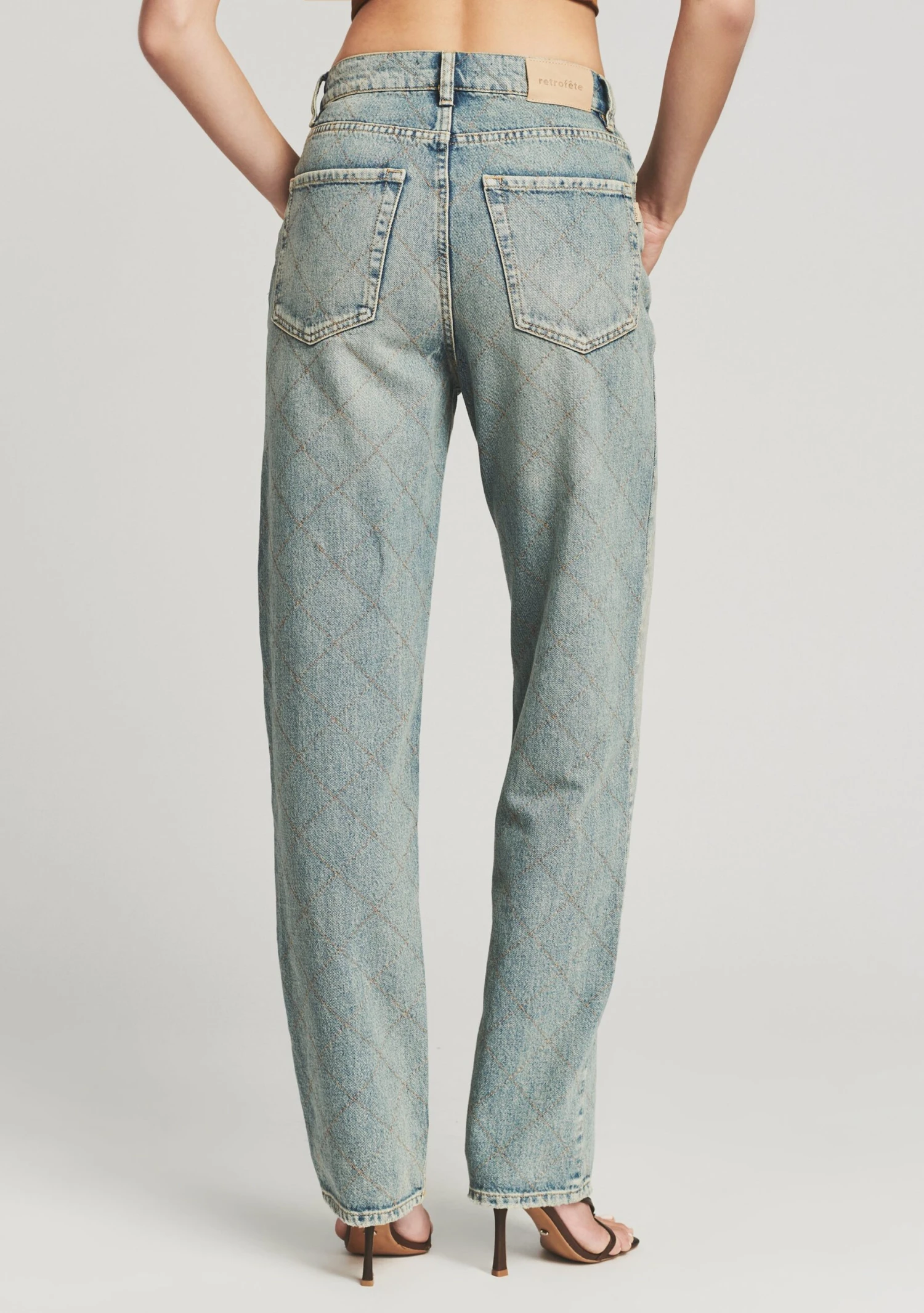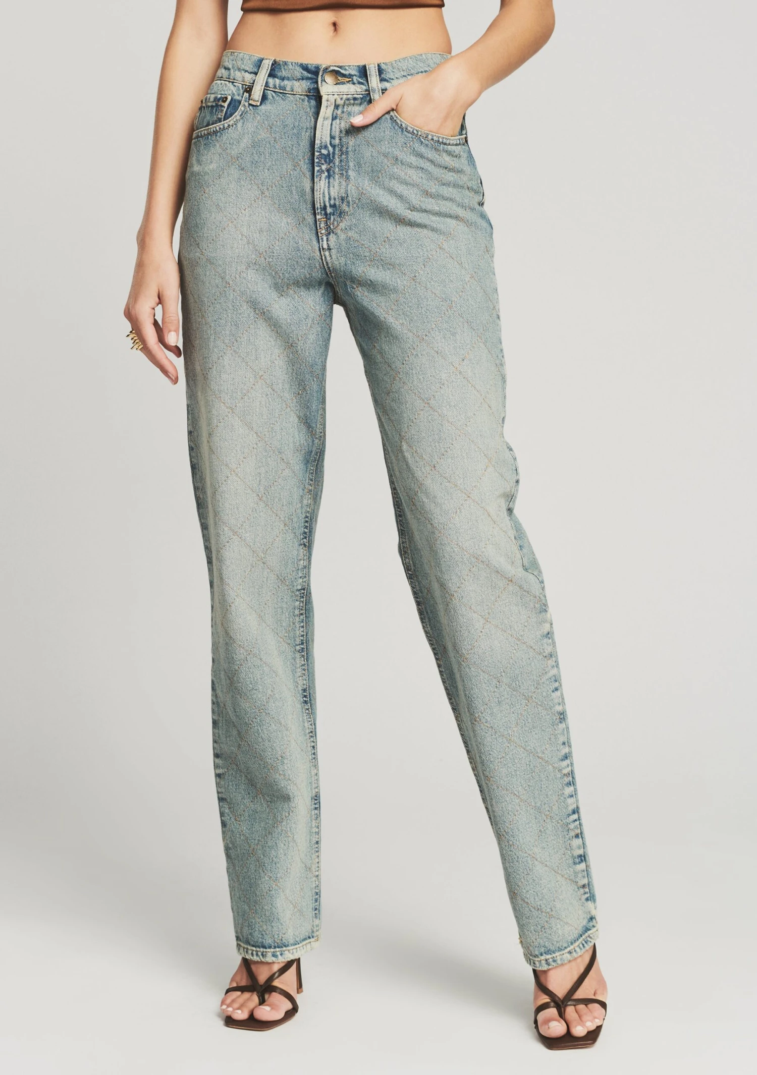 A modern rendition of a denim classic, the Lilou Jean is characterized by its unique quilt-inspired topstitched design. The relaxed straight-leg pant features light distressing at the hems, with two pockets in the front and back. Pair with our Arden Jacket for an elevated canadian tux. Shown here in Vallejo.