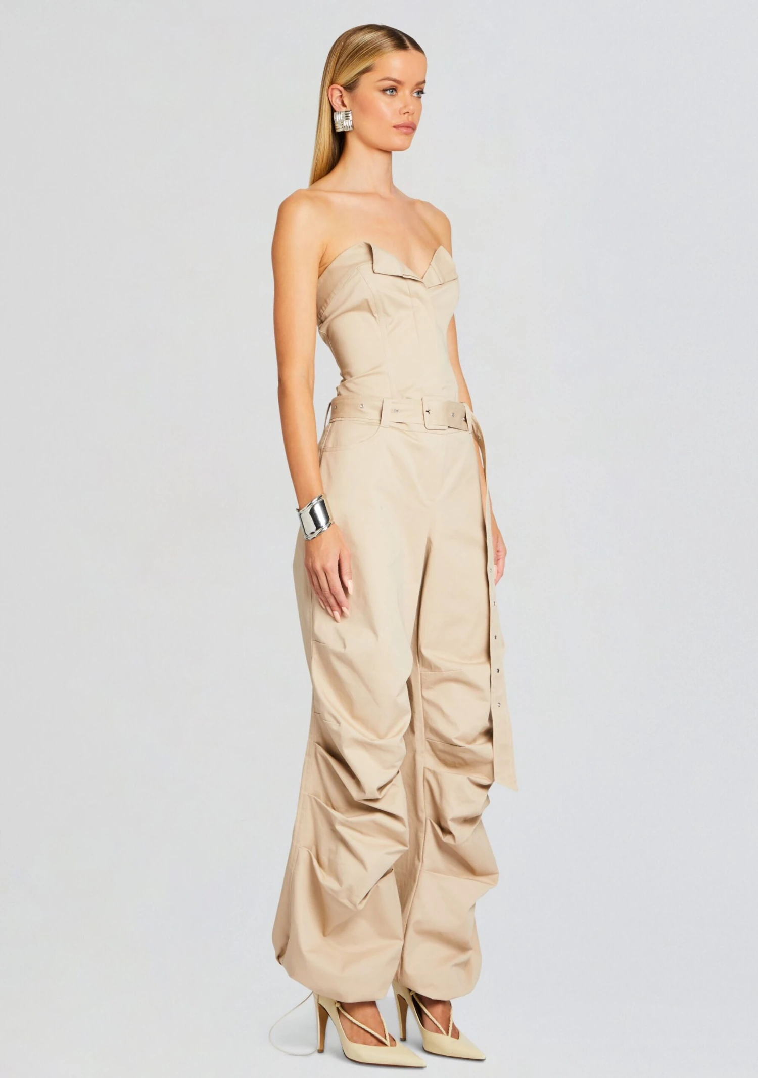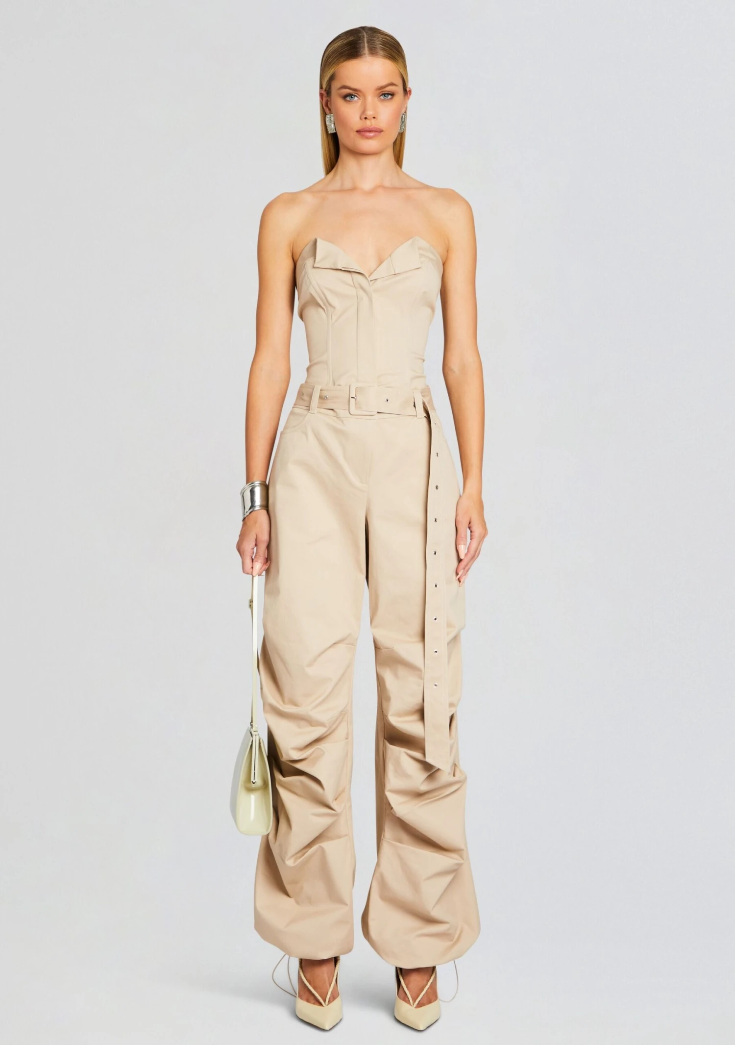 Step into style and functionality with SER.O.YA’s London Jumpsuit. This cargo-styled jumpsuit features a banded hem and waist-cinching belt for a flattering fit that exudes edginess and confidence. The trendy foldover sweetheart neckline adds a feminine and playful element to this versatile piece. Shown here in Oxford.
