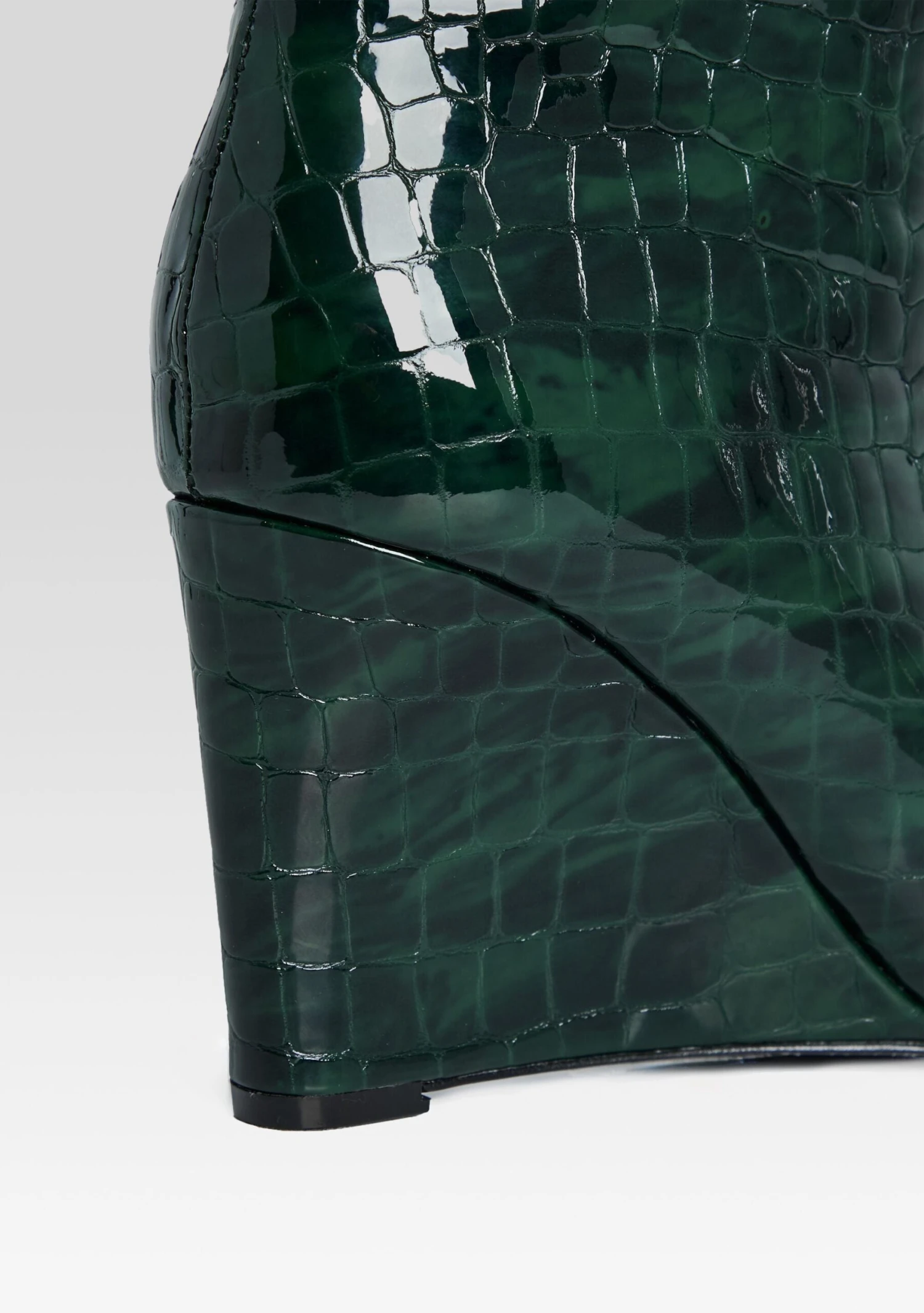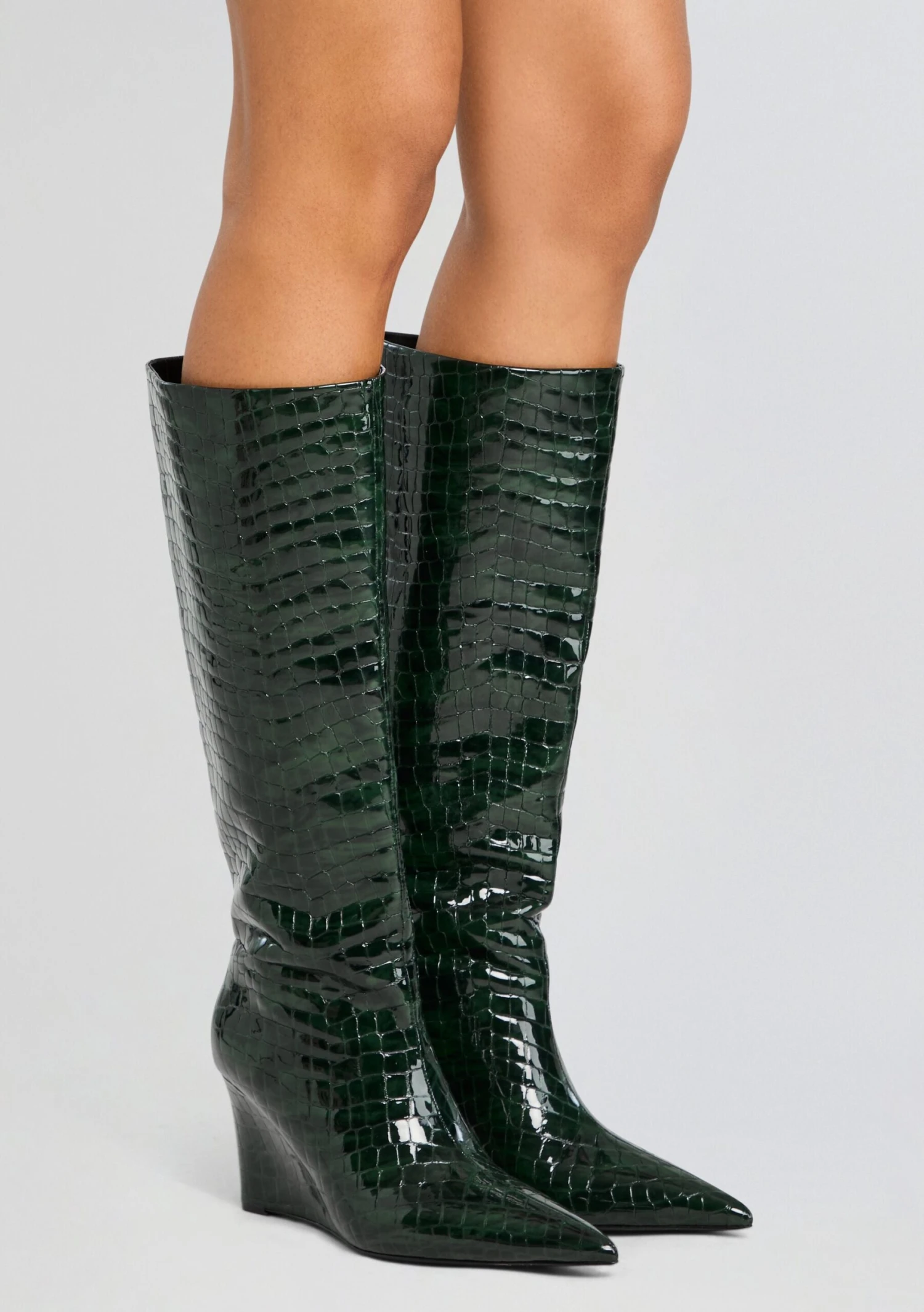 Elevate your style with the Natassa Wedge Boot. Designed for a night out, this knee high boot features a sleek pointed toe and a trendy wedge heel. The croc print adds a touch of sophistication and edge to any outfit. Make a statement and step out in luxury with the Natassa Wedge Boot.
