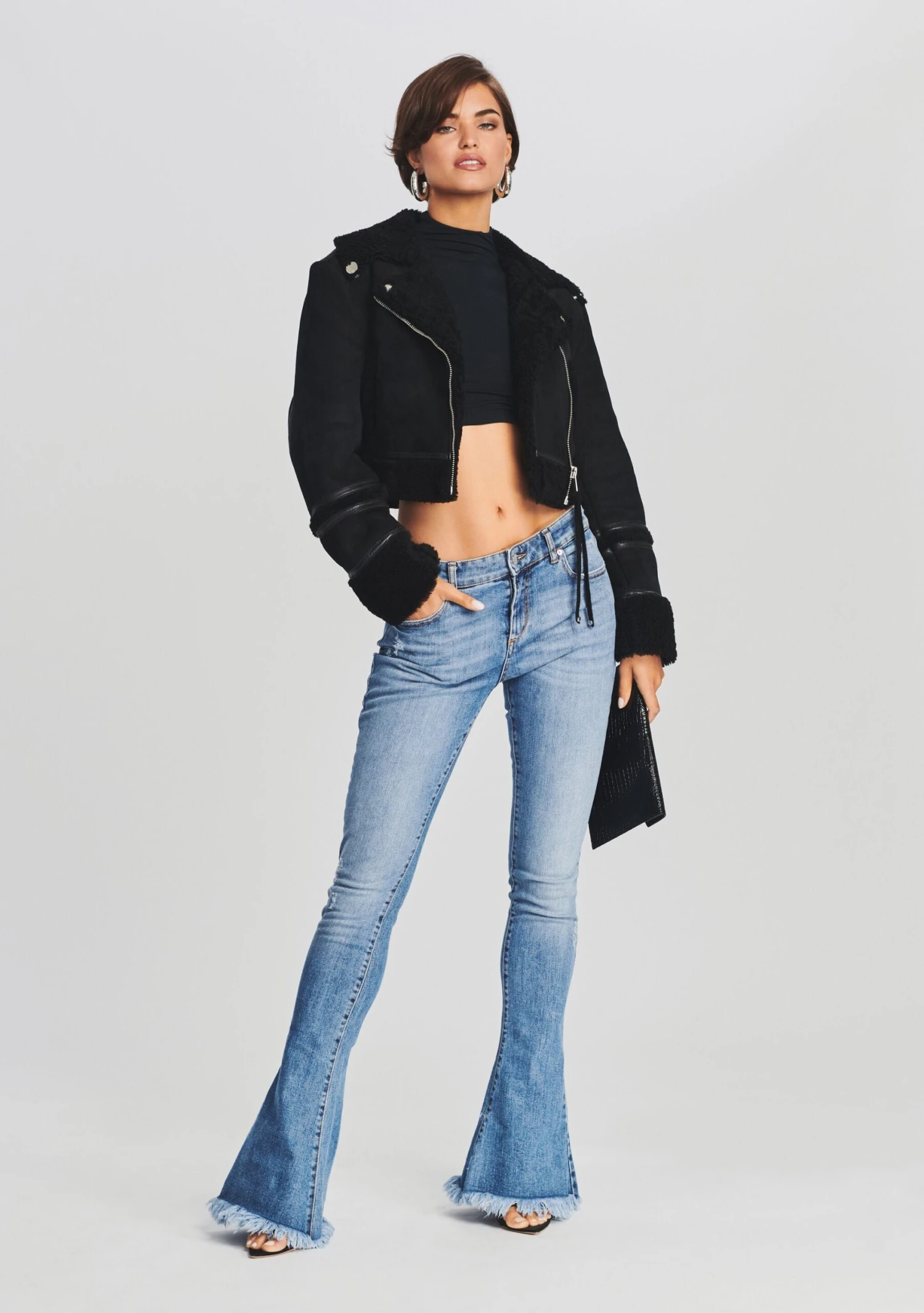Our Presley Pant is a vintage-inspired acid jean with a modern twist, available exclusively on RetrofĂȘte.com. Cut in an elongating, mid-rise flare, pair them with heels for an even edgier look. Shown here in Bailey.