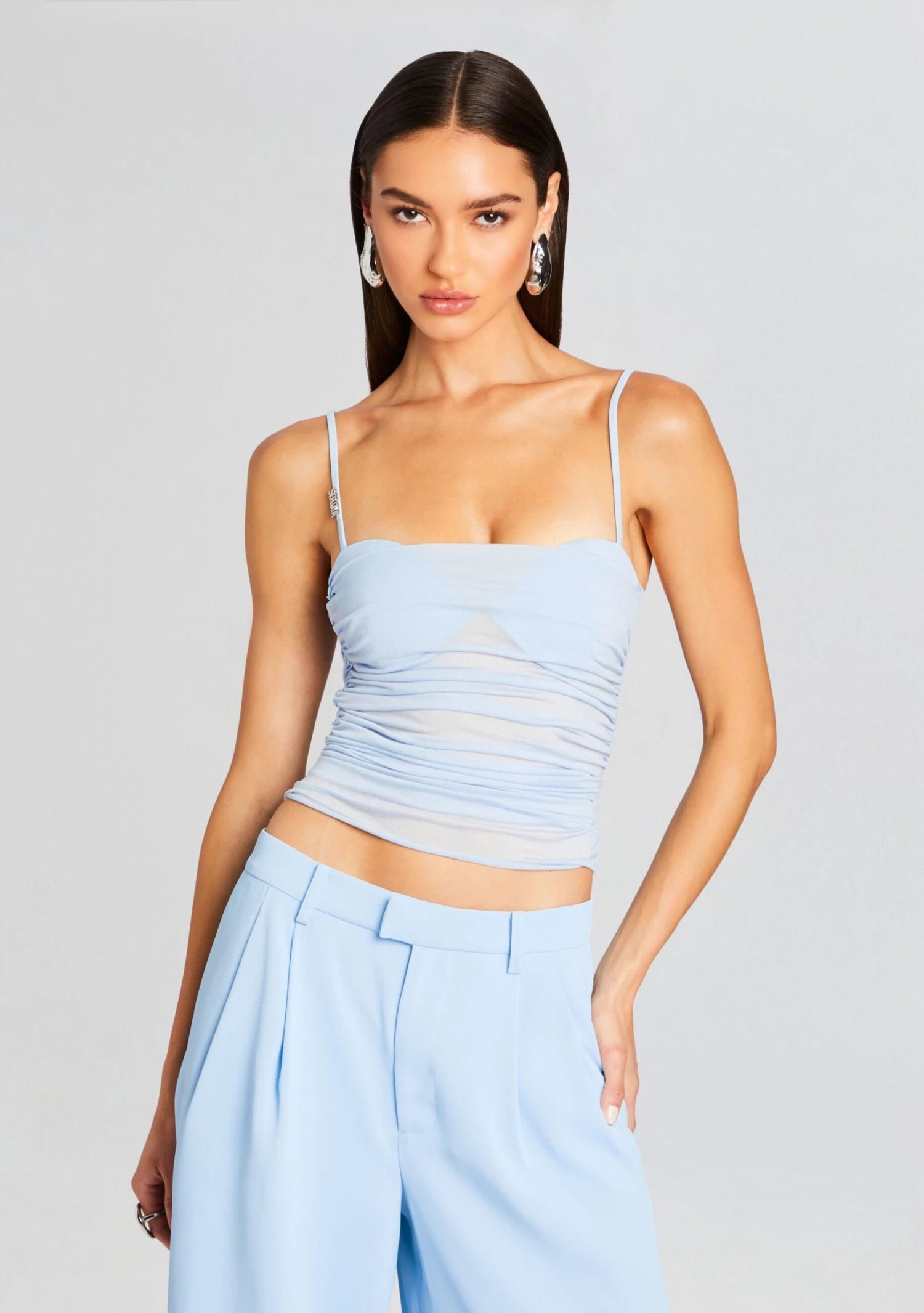 Revamp your summer wardrobe with SER.O.YA’s Reyes Top.vThe ruching throughout adds texture and dimension to this tank top, while the peek-a-boo cup detail adds a flirty touch to the neckline along with an iconic SER.O.YA emblem on the strap. Shown here in Powder Blue.