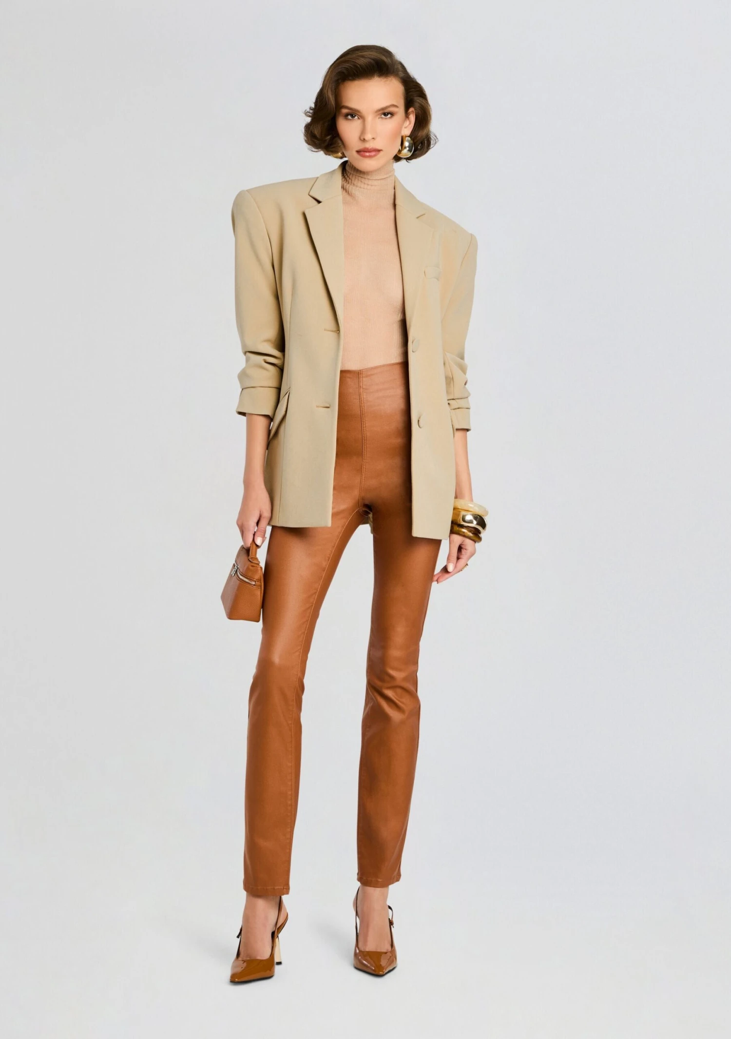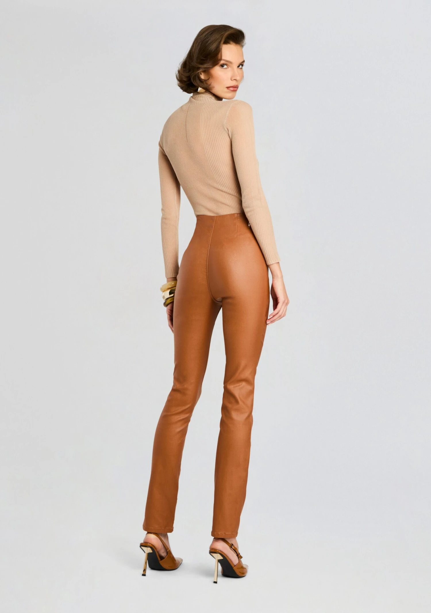 Embody the essence of luxury and style with the Xena Pant. The coated fabric provides a sleek and sophisticated look, while the slim fit accentuates your curves. Perfect for a night out, these pants exude elegance and exclusivity. Prepare to turn heads and make a statement with this wardrobe essential.
